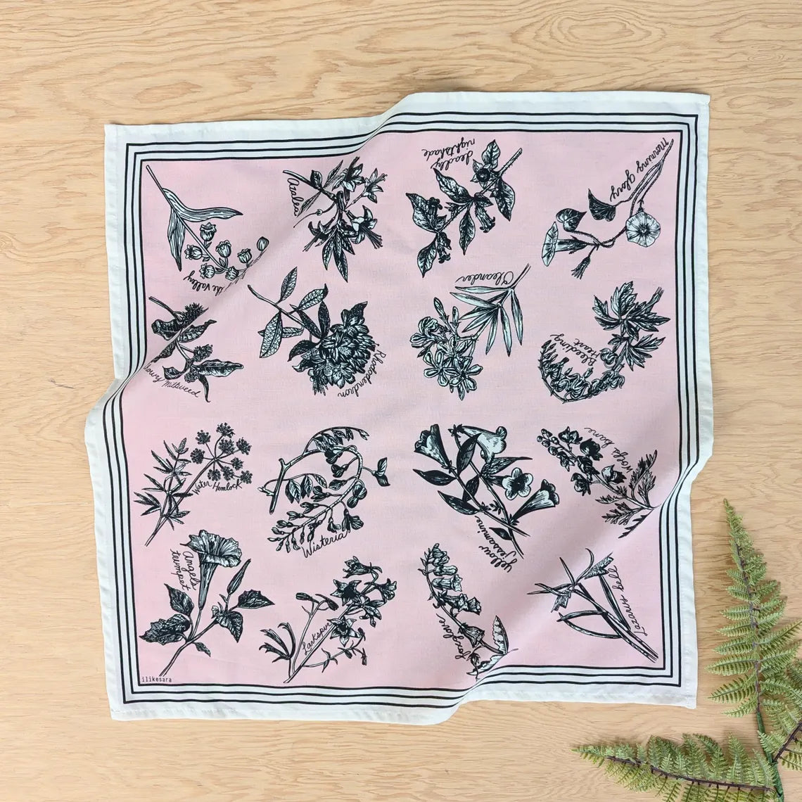 bandana | fatal florals - pink screenprinted poison flower scarf