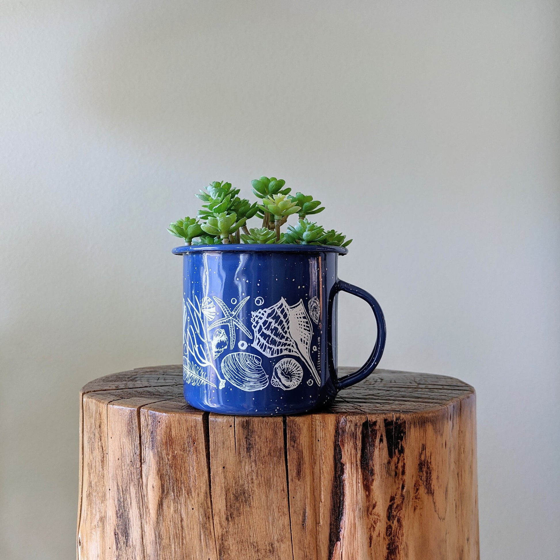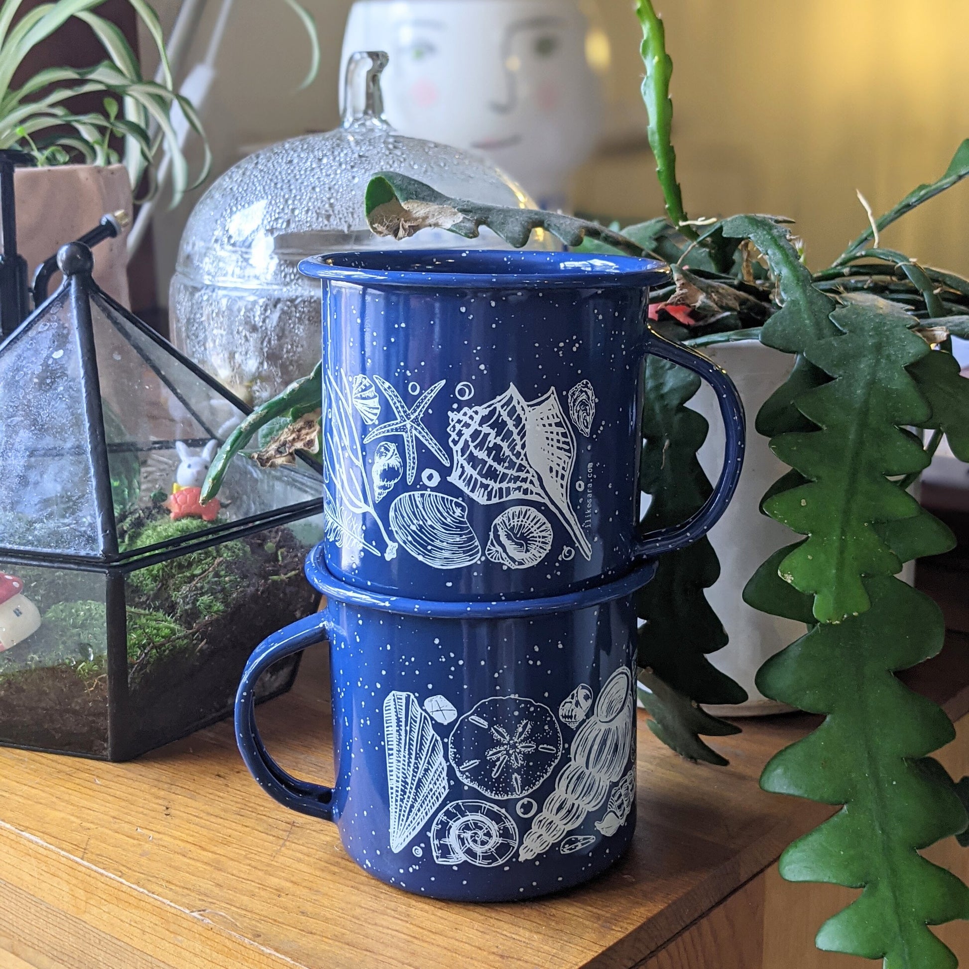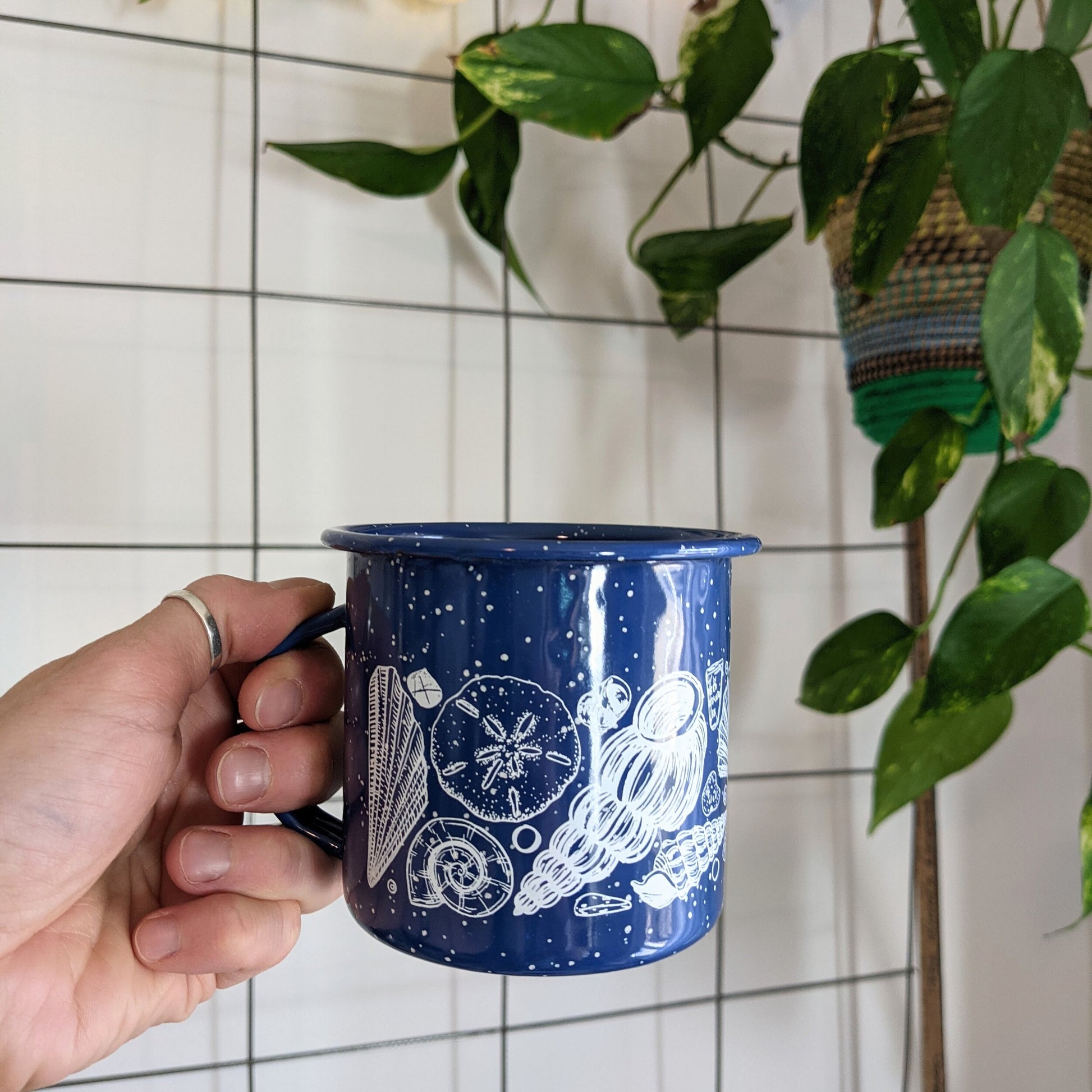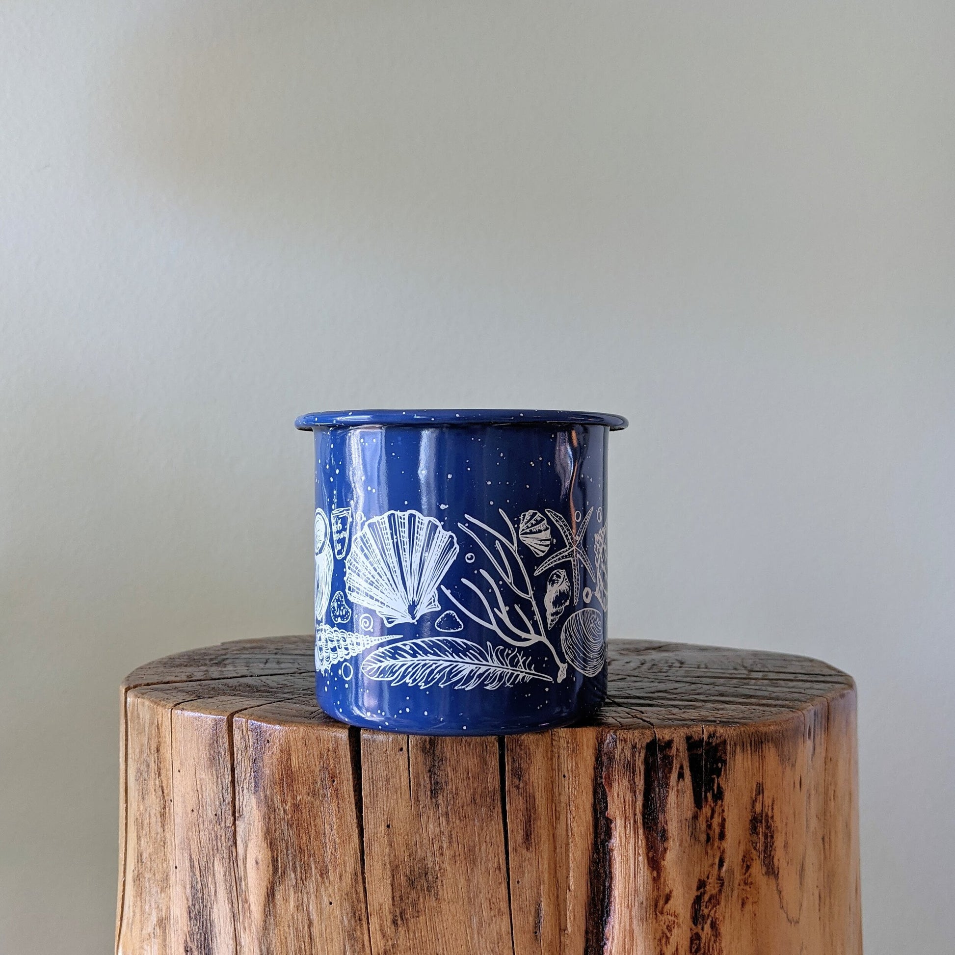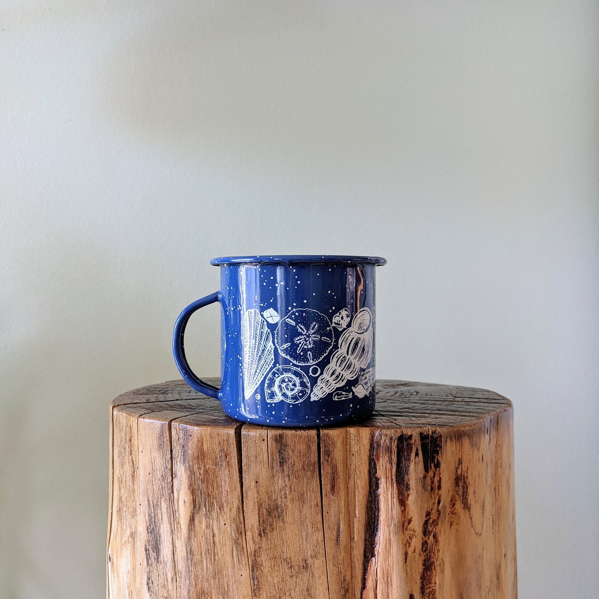 Featuring favorite foraged beach ephemera, this enamel camp mug will bring some of the sea to whenever you take it. Made from durable and practical enameled steel, this cup holds 12 ounces of your favorite beverage. The designs on this mug are made up of ilikesara/Sara Schalliol Hodge's original hand-illustrations.
