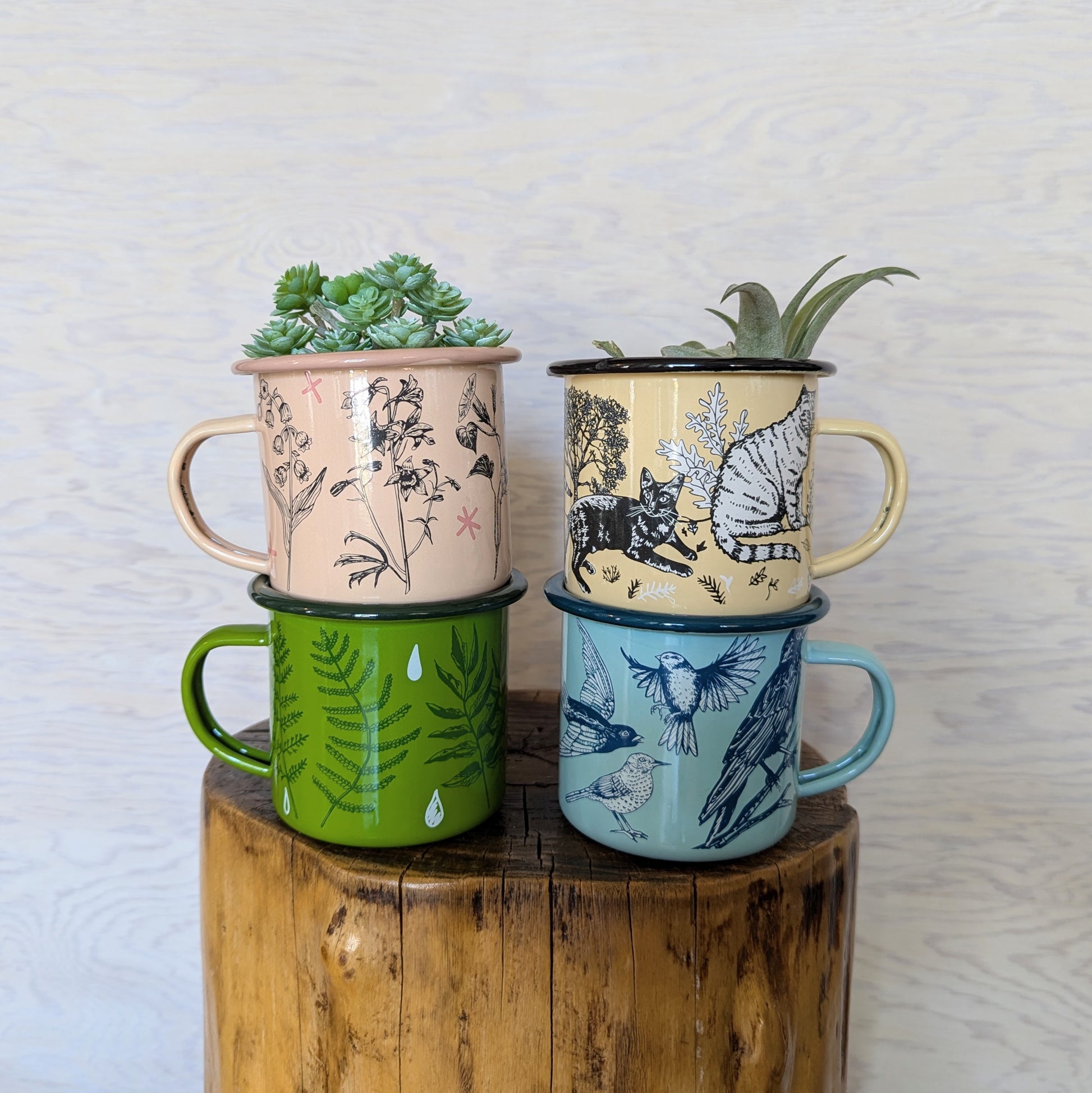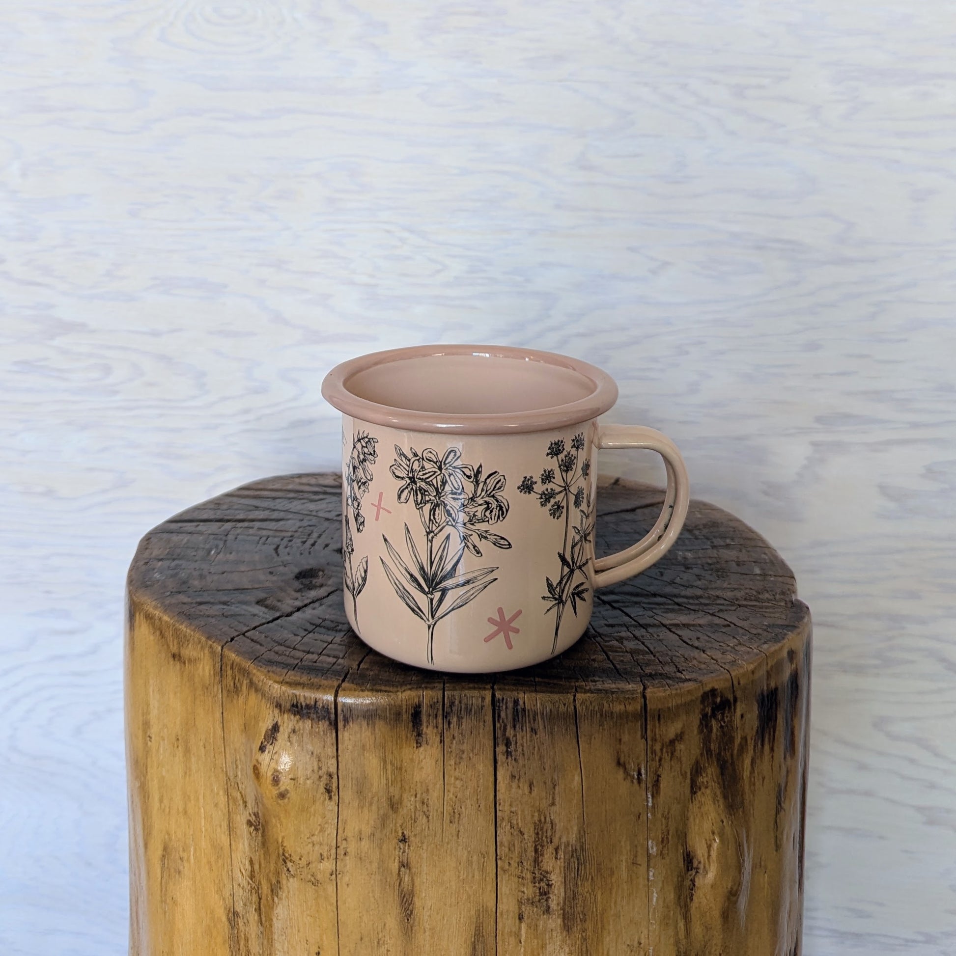 A sweet looking enamel mug, with a dangerous twist... poisonous flowers!