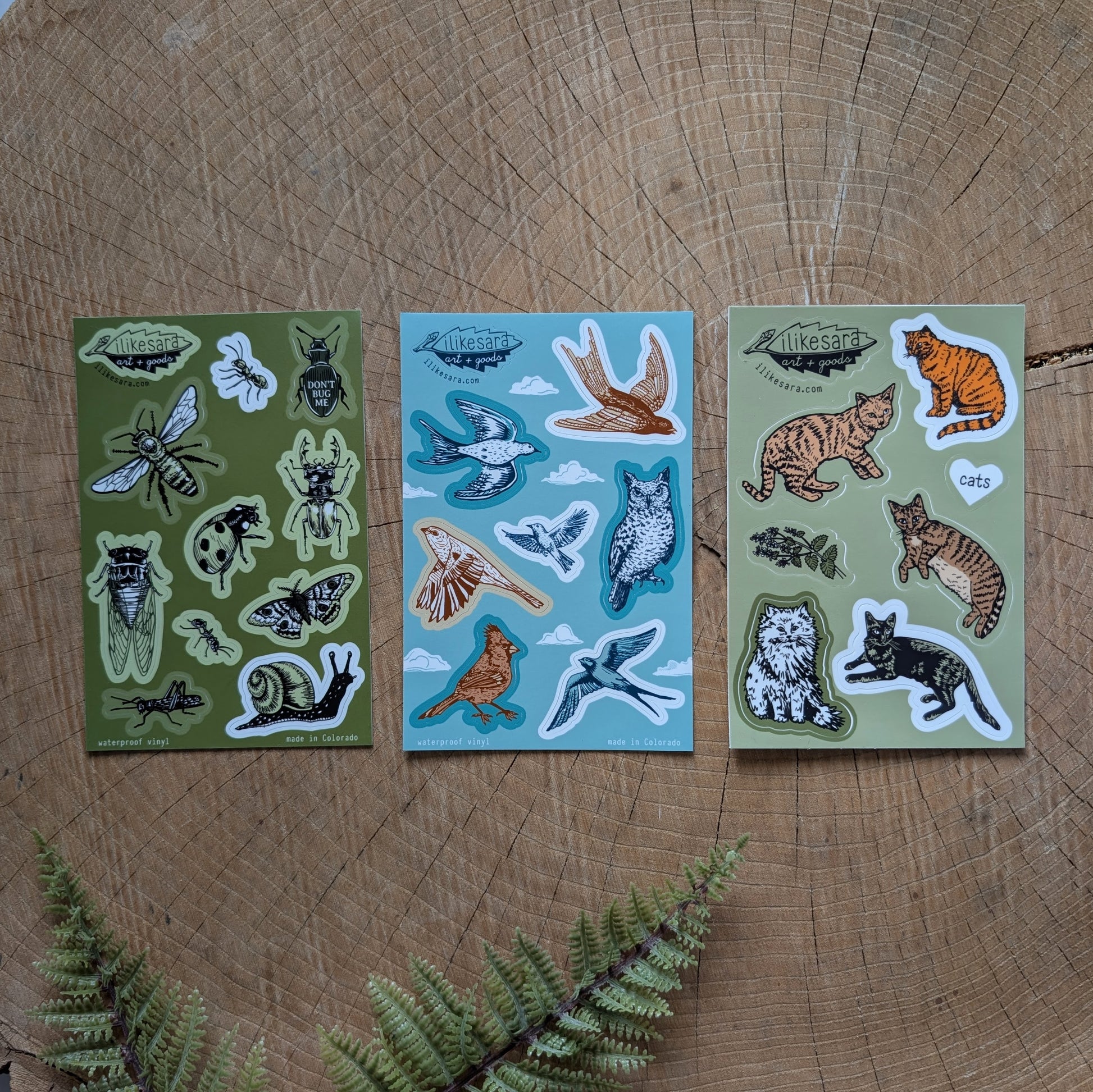 -includes 8 stickers: 5 cats, a catnip plant, cat heart, & ilikesara leaf