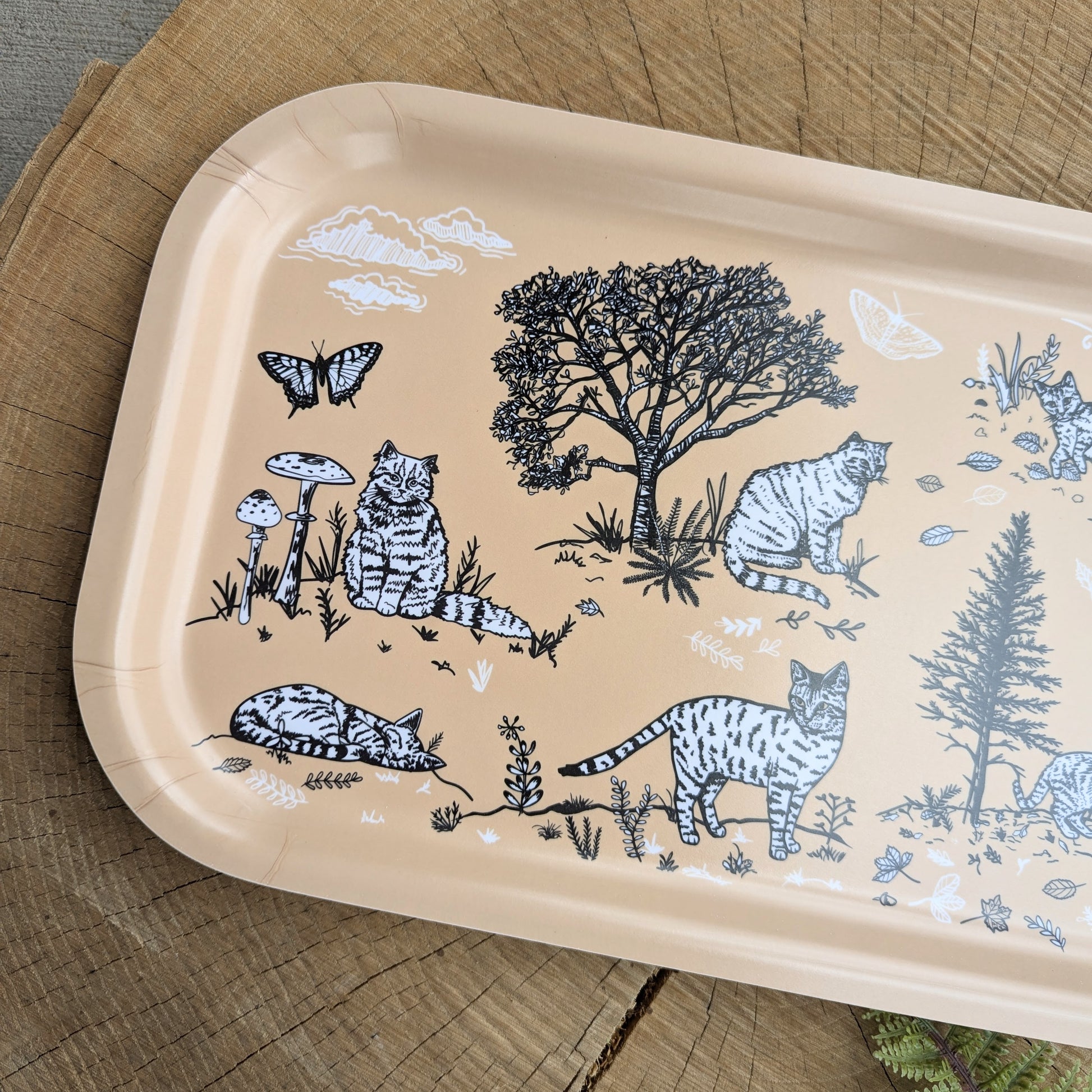 birch wood tray | outside cats - tan 17" x 9" dishwasher safe